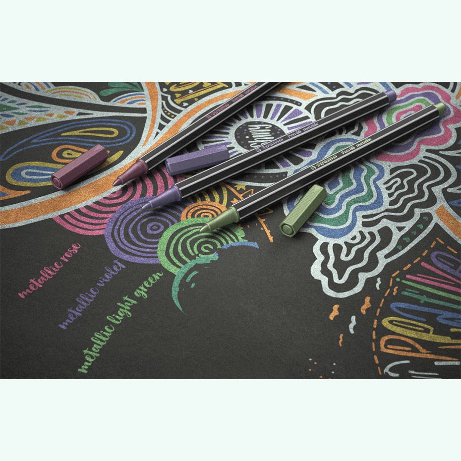 De la decoratiuni realizate cu grija pentru oaspeti, pana la felicitari festive pentru prieteni si familie: STABILO Pen 68 metalizat le ofera proiectelor do-it-yourself o nota deosebita de originalitate. Este instrumentul ideal pentru decorare, desen si scris de mana.