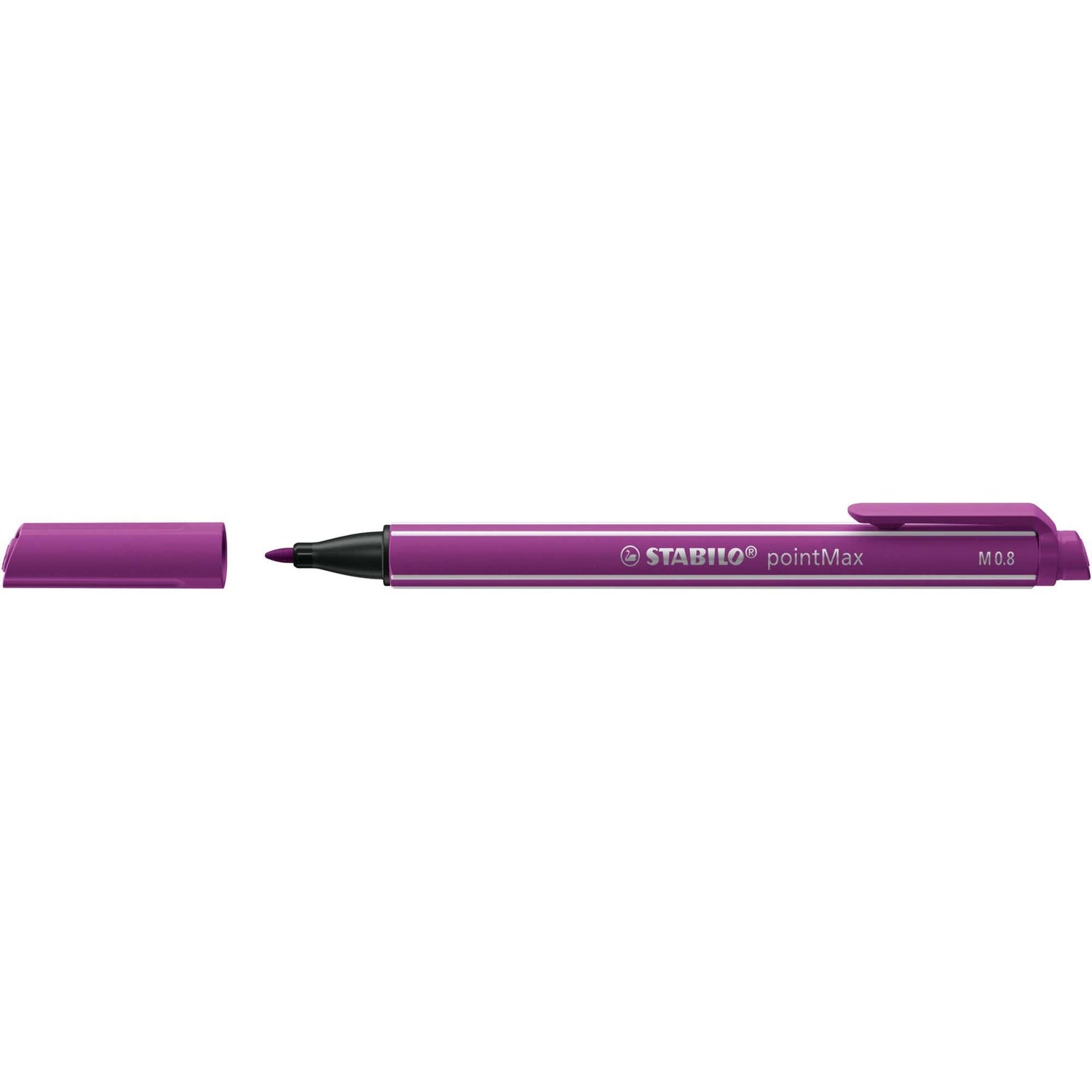 Toti cei care incearca acest fineliner vor recunoaste ca este dezvoltat cu pasiune pentru scris si grija de a va permite confort in timpul scrierii, senzatie placuta atunci cand scrieti, chiar si in cazul utilizarii intense. Pe langa paleta bogata si 42 de culori concepute pentru ca tu sa te exprimi cu adevarat, STABILO PointMax vine cu o clema de prindere. Puteti lasa capacul deschis timp de pana la 24 de ore fara a compromite integritatea cernelii si a varfului. Ceea ce face-l cu adevarat atat de special pe STABILO pointMax, este varful sau unic, robust si durabil. Proiectat special pentru a crea o latime a linie de 0,8 mm, este ideal pentru sarcinile de zi cu zi si pentru hobby-uri. Indiferent daca scrieti o scrisoare formala, luati notite sau pur si simplu trasati linii, latimea liniei de 0,8 mm asigura eficienta, finete si vizibilitate. Recomandat • Tuturor celor care scriu zilnic si care pretuiesc varietatea culorilor.