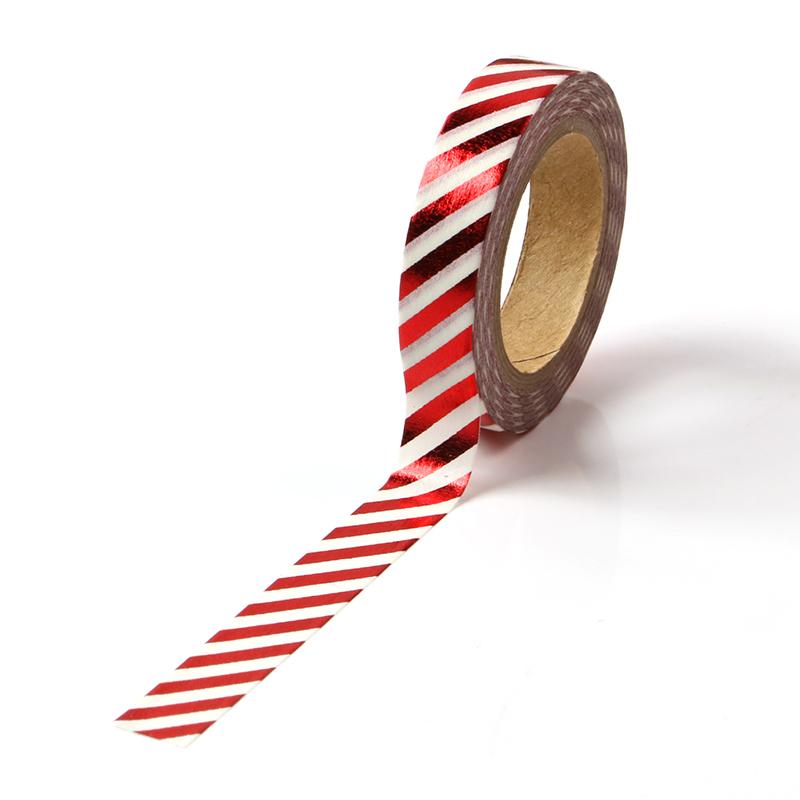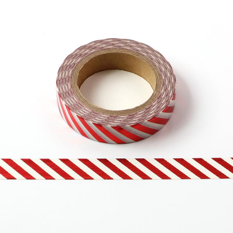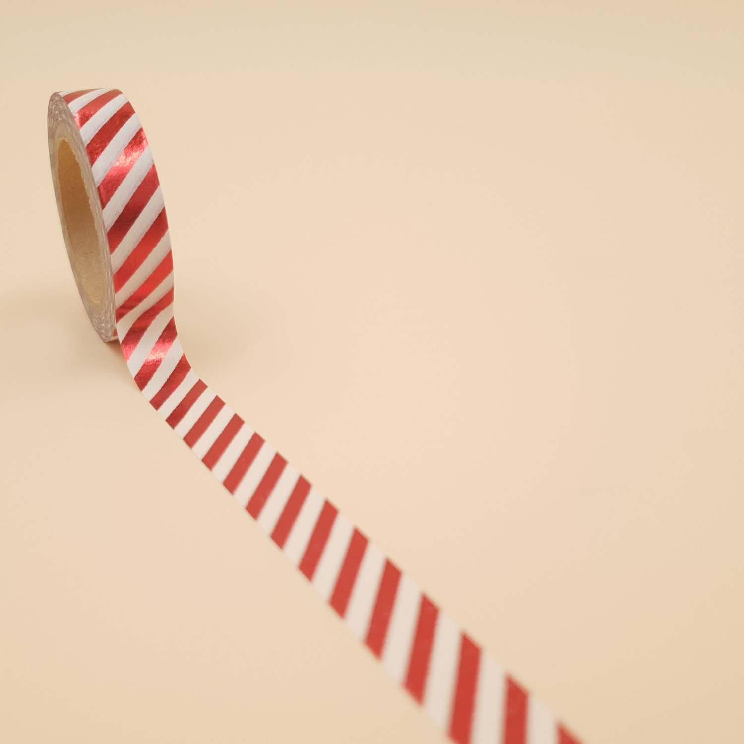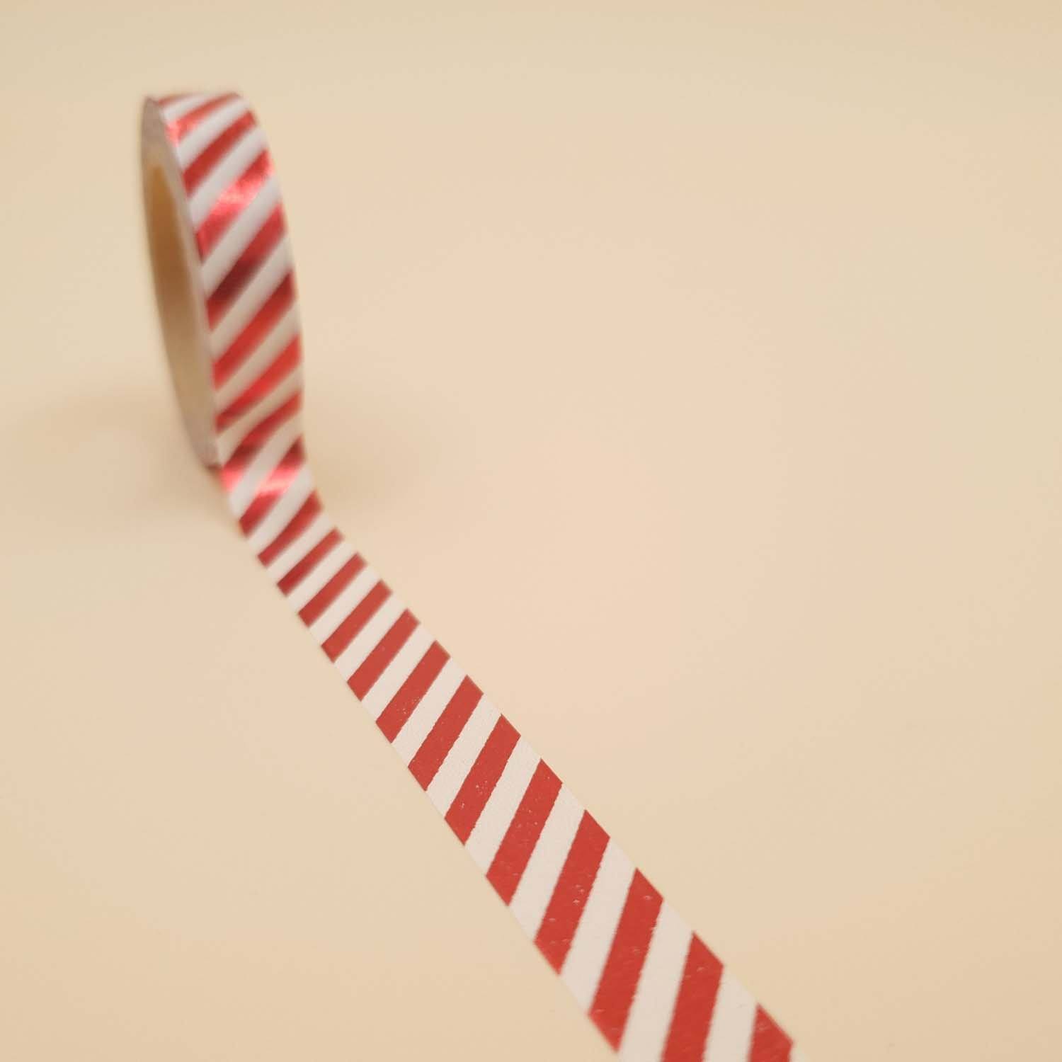 Banda Washi - Alba Model Dungi Rosu Metalizat - 1 buc / Alb