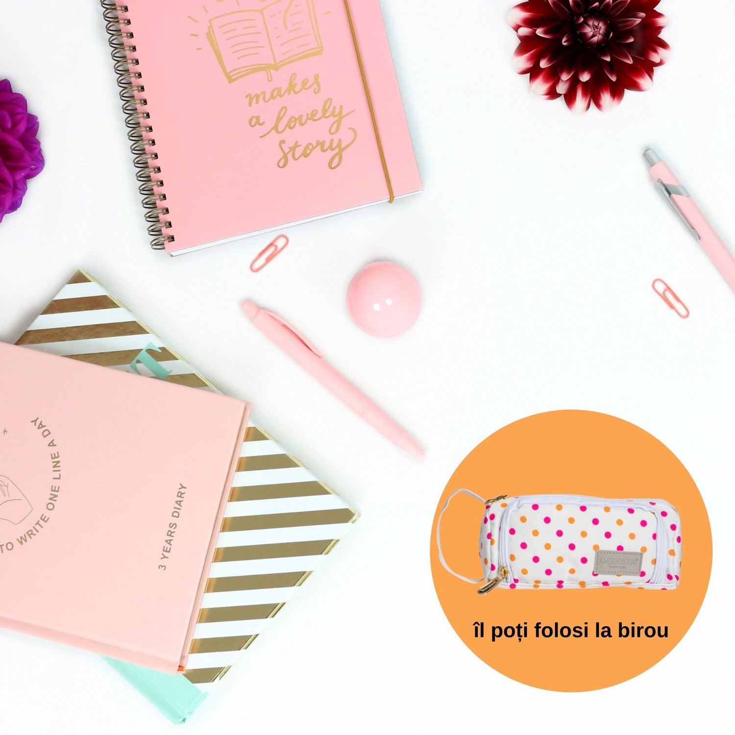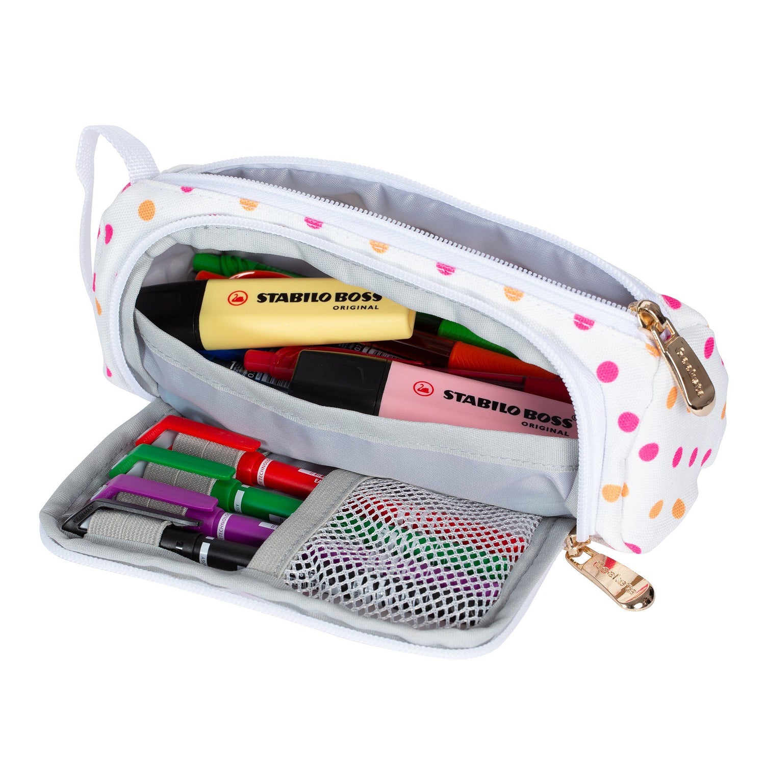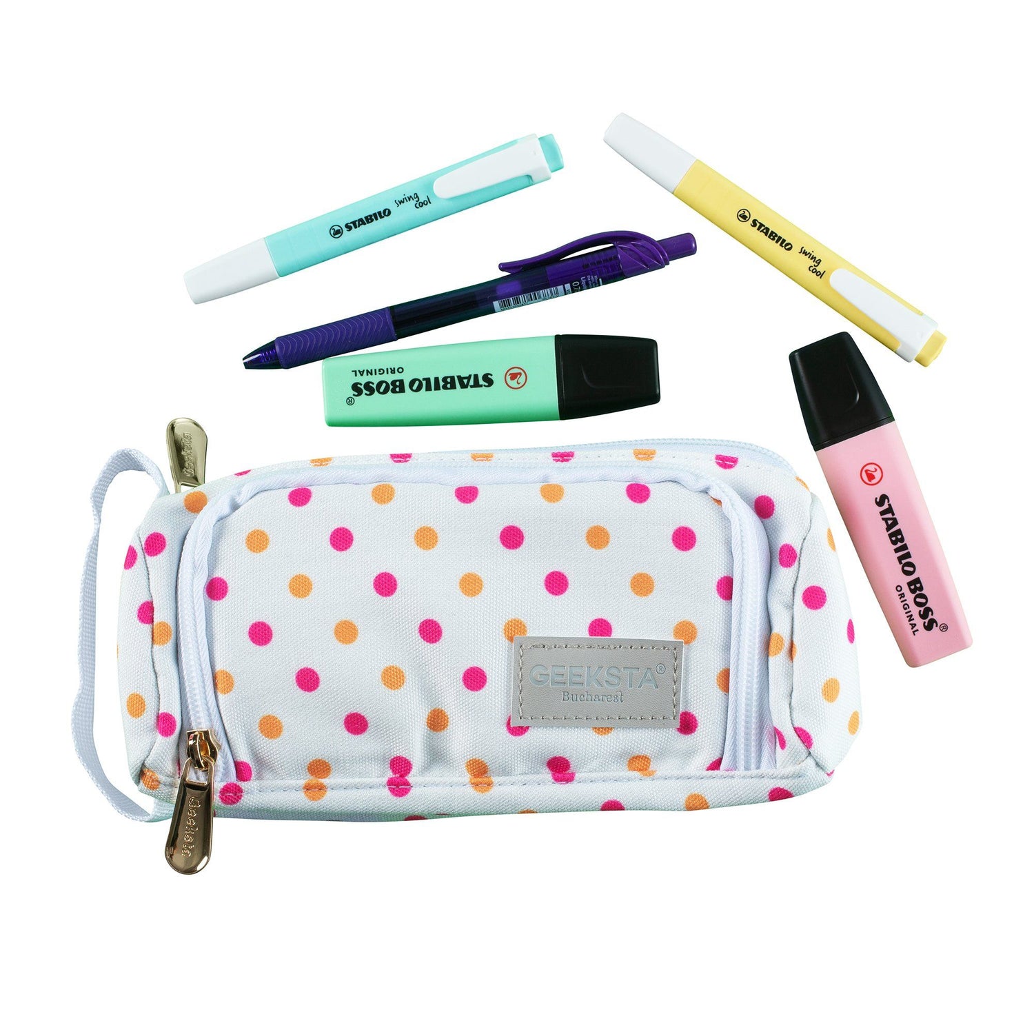Capacitatea mare de stocare iti permite sa depozitezi o multime de obiecte, incepand cu creioane, markerele tale prefarate Stabilo, pixurile cu gel de la Pentel si pana la un mini calculator sau balsamul tau de buze cu miros de cirese.
