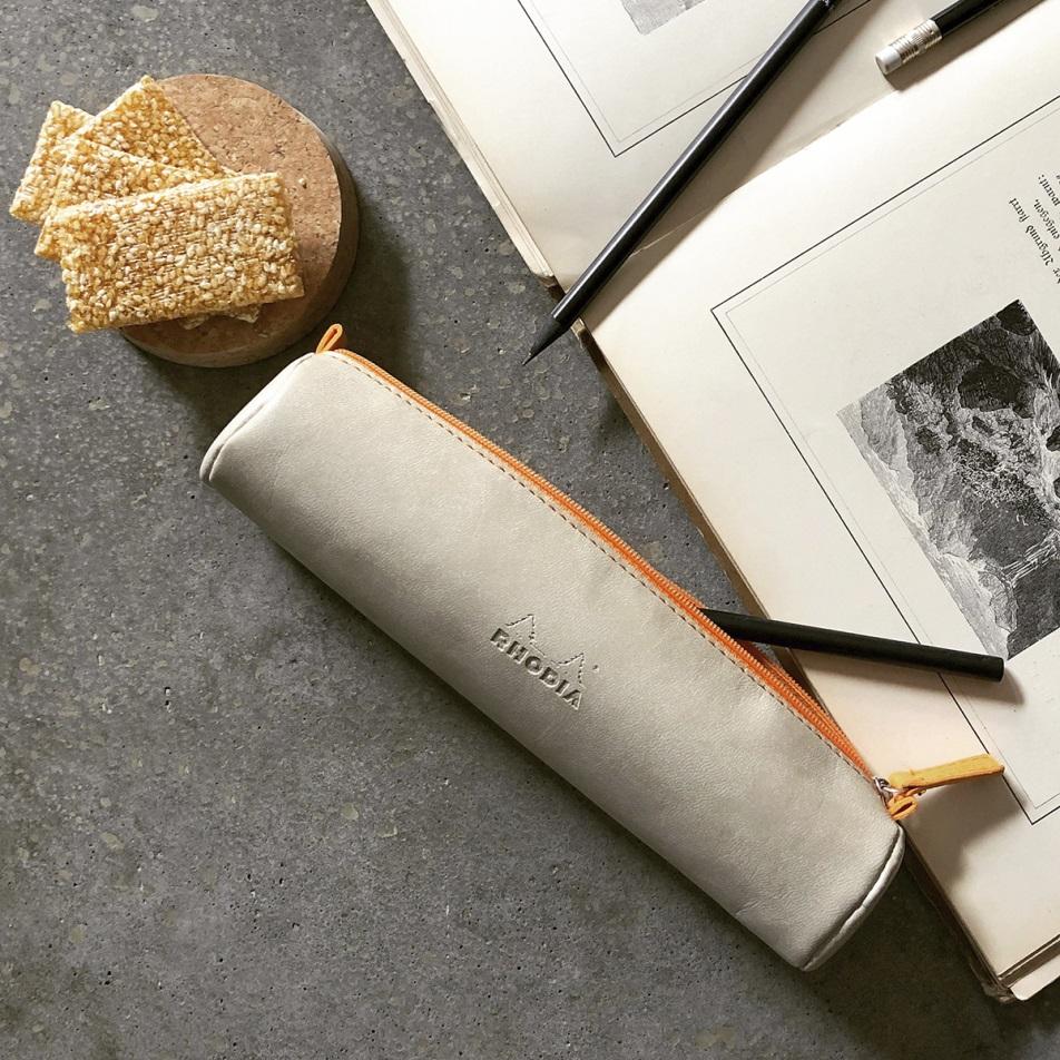 Penar rotund, din imitatie italiana de piele cu sigla Rhodia embosata, interior textil, ivoire