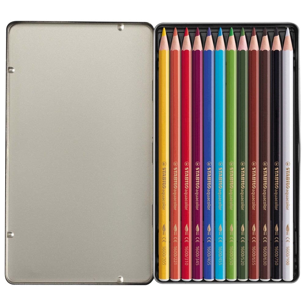 Creioane colorate STABILO Aquacolor, 12 culori /set, cutie metalica