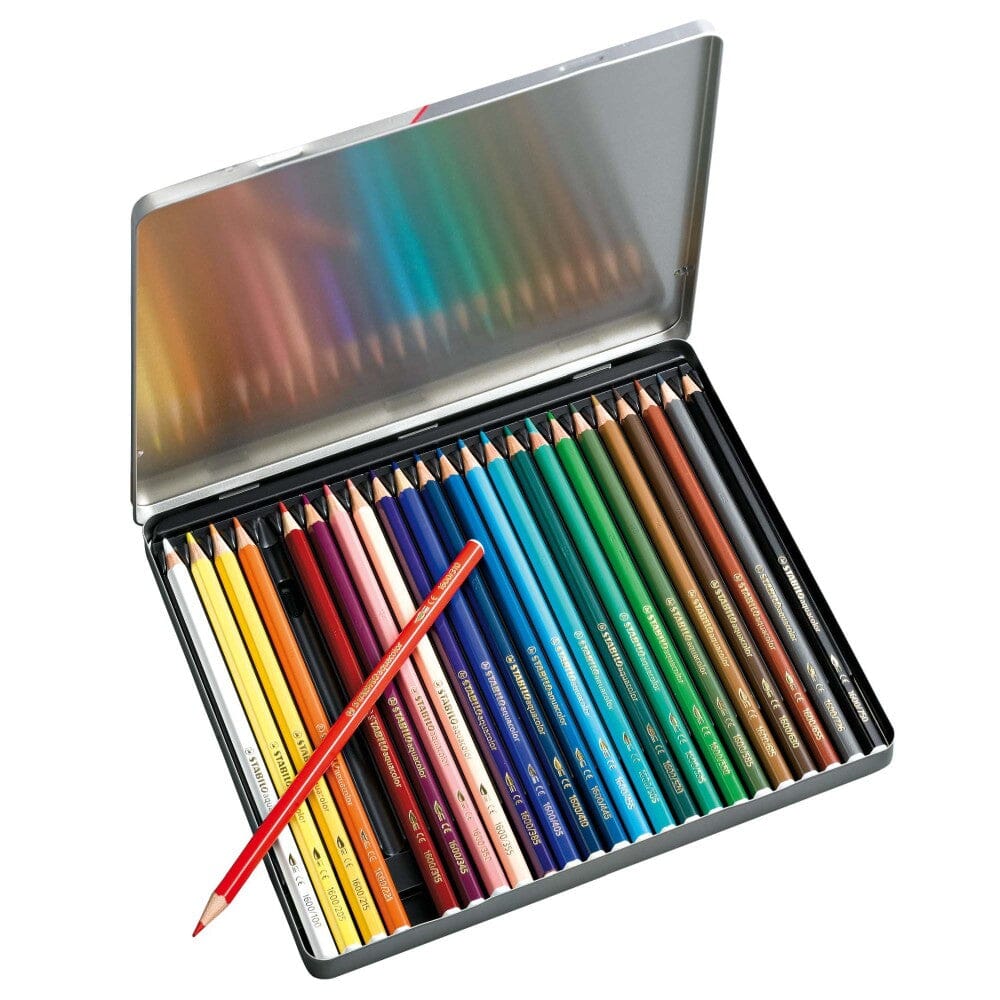 Creioane colorate STABILO Aquacolor, 24 culori /set, cutie metalica