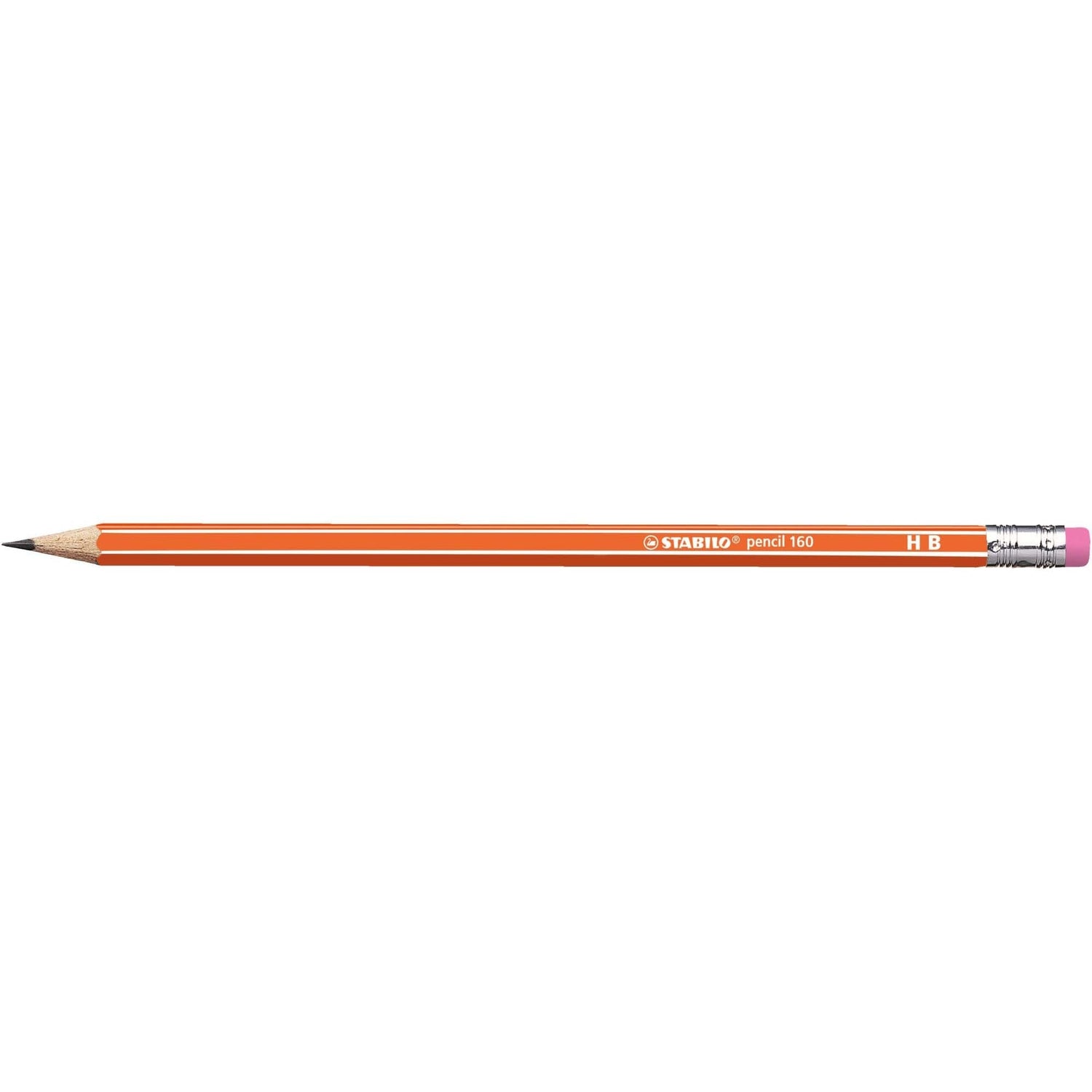 Creion grafit STABILO 160, HB, cu radiera, corp portocaliu