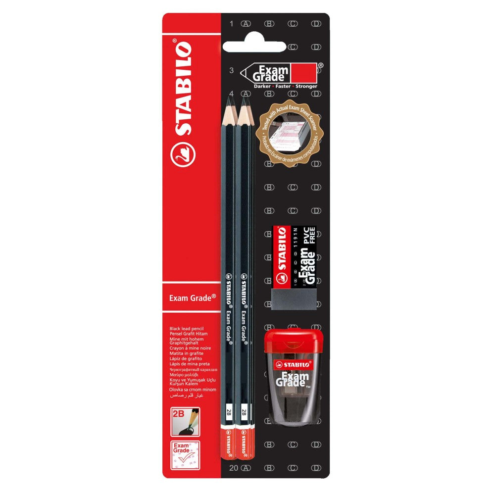 Creion grafit STABILO ExamGrade, set 4 creioane 2B, radiera fara PVC, ascutitoare, blister