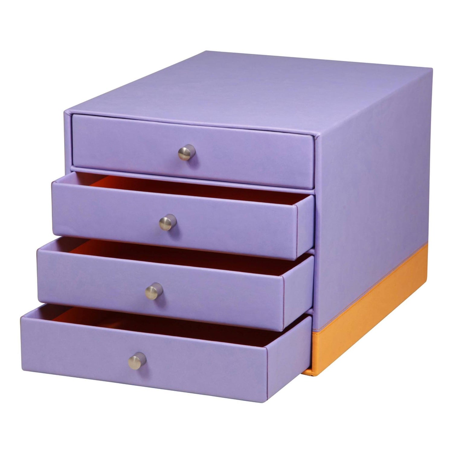 Cutie pentru depozitare cu 4 sertare, Rhodiarama, imitatie piele, iris